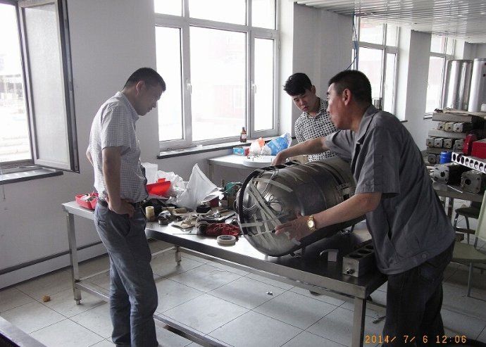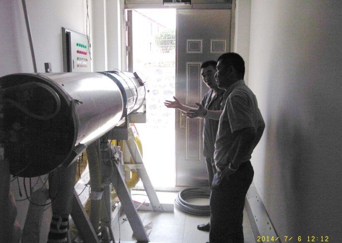 来宾参观大连希奥特新型分体壁挂太阳能热水器的检测现场