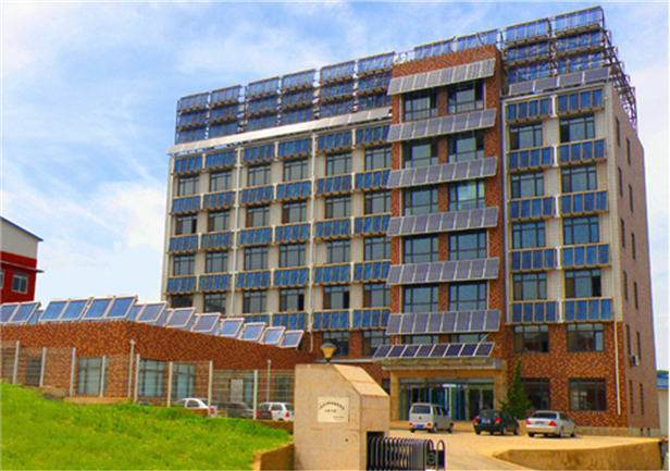 2012年,作为大连市可再生能源示范工程,大连希奥特阳光能源科技公司成功建设了太阳能办公大楼。大楼共六层,整体面积5120平方米,冬天采暖,夏季制冷及非饮用热水,全部由太阳能光热系统提供,实现了太阳能采暖制冷热水三联供。2012年4月正式投入使用,整个夏季均使用太阳能制冷,室外温度达到30度时室内温度仍保持在24-26度,舒适怡人。为新能源的创新与发展再添异彩。