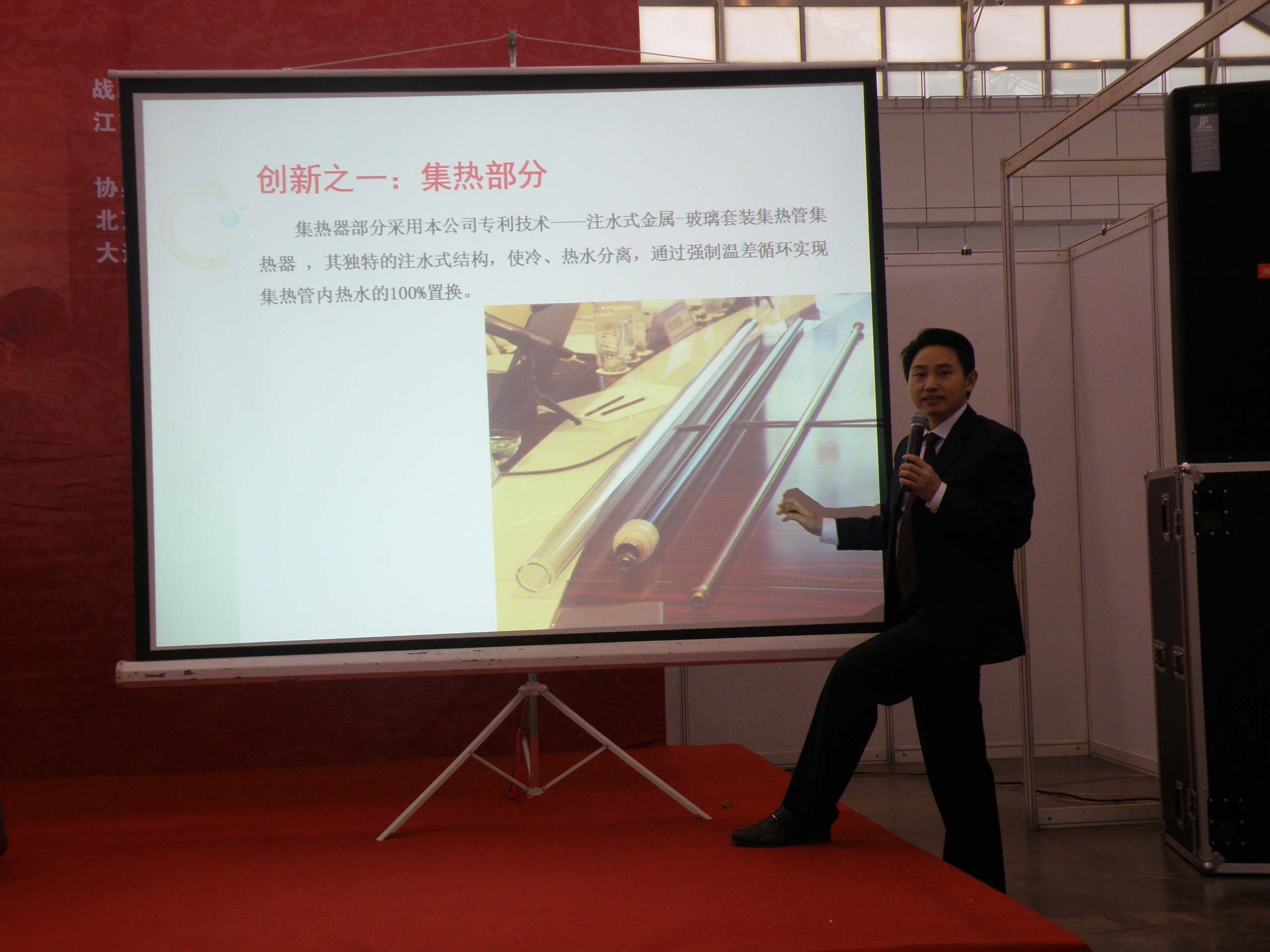 在展会期间,邓晓东董事长就企业产品体系、技术研发动力和公司规划愿景等话题与江苏省电视台、新浪网等媒体交流,并表示对太阳能热利用行业发展充满信心,他在专访中提到,太阳能热利用行业获得大的发展是社会进步必然趋势,有蓝天才有未来。